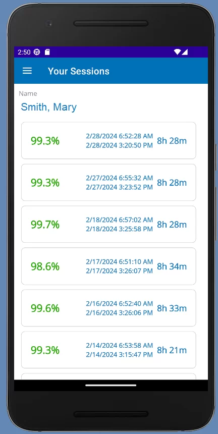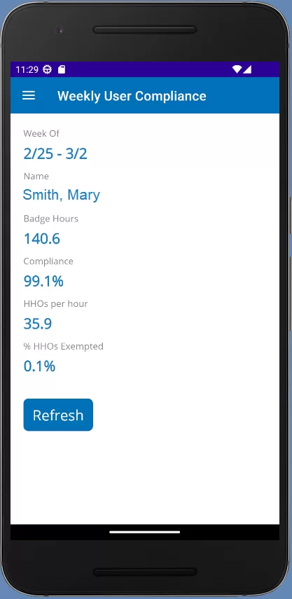 On the mobile app, users will be able to check their 7-day and 30-day compliance rates, compliance per session, number of room entries and exits per session, and number of hand hygiene opportunities per session.